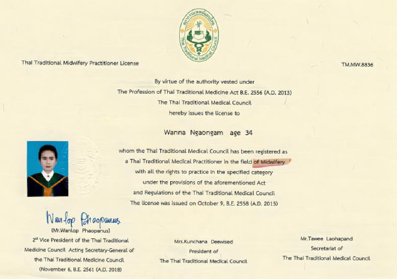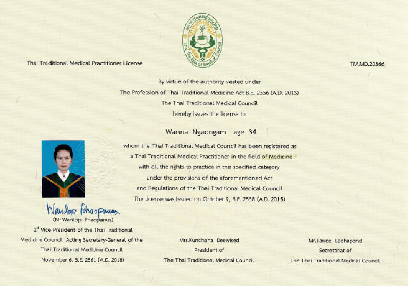 Bild von Zertifikart altanative Medizin Thailand für frau Wanna Ngaongam Inh. Thai-Massage Mahana, Thai-Massage in München